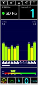 Der GPS Test, mit gleichnamiger Software, kann die Position auf 1 m genau bestimmen (Dank Mediatek Prozessor). Dabei wurden 53 Satelliten gefunden und davon 40 für die Positionsbestimmung verwendet.